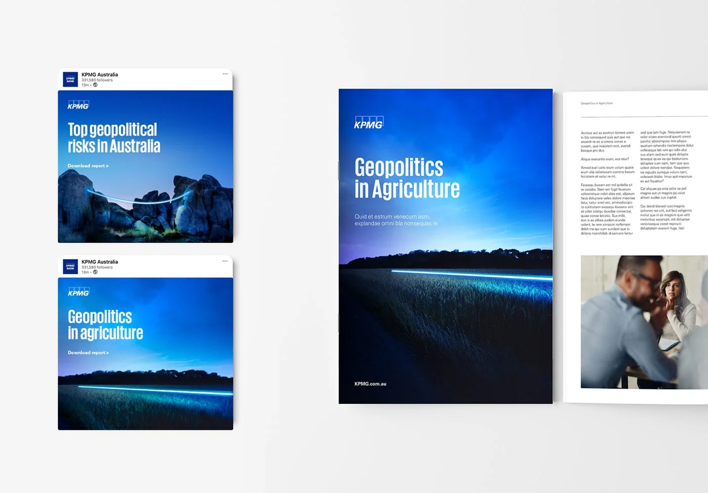 an illuminated line represents geopolitical risk in agriculture as part of a creative development design for kpmg