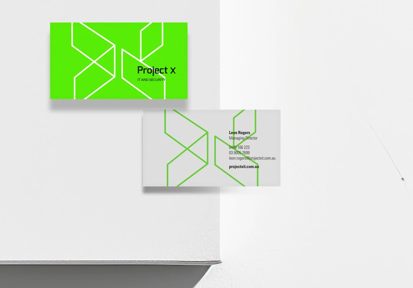 Project X is a cyber security business providing advanced threat protection and defense solutions. The visual identity reflected this by creating a logomark built from a keyline X that represents the intersection of threat and defense, highlighting attributes of precision, vigilance and the critical crossroads where vulnerabilities are identified.